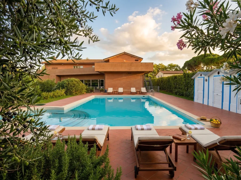 Circondata dal verde e attrezzata con comodi lettini, è il luogo perfetto per godersi il sole della Toscana, leggere un libro in totale tranquillità o regalarsi un momento di puro svago con la famiglia.